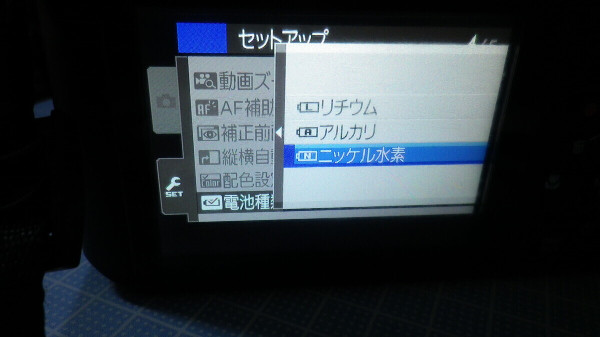 さすがにアルカリ単三使いまくるのは不経済、エネループ使えないかな?電圧低くて駄目かなと思って設定メニュー触っていたたらニッケル水素モードがありました。